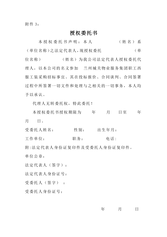 蘭州城關(guān)物業(yè)服務(wù)集團(tuán)有限公司 職工西服工裝系列采購招標(biāo)文件